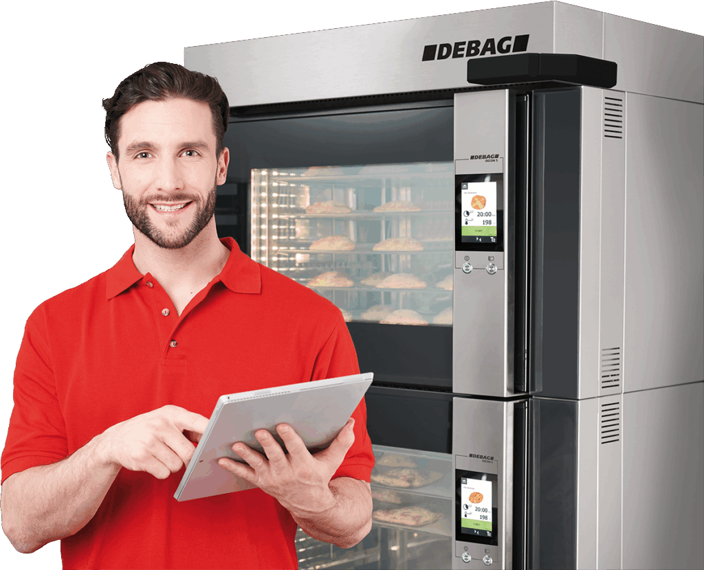 The award-winning DECON (DEBAG CONvection Oven) in-store baking oven redefines baking technology: with 8.5 % less energy consumption compared to conventional models, steamer function and core temperature sensor, the DECON is a true all-rounder.